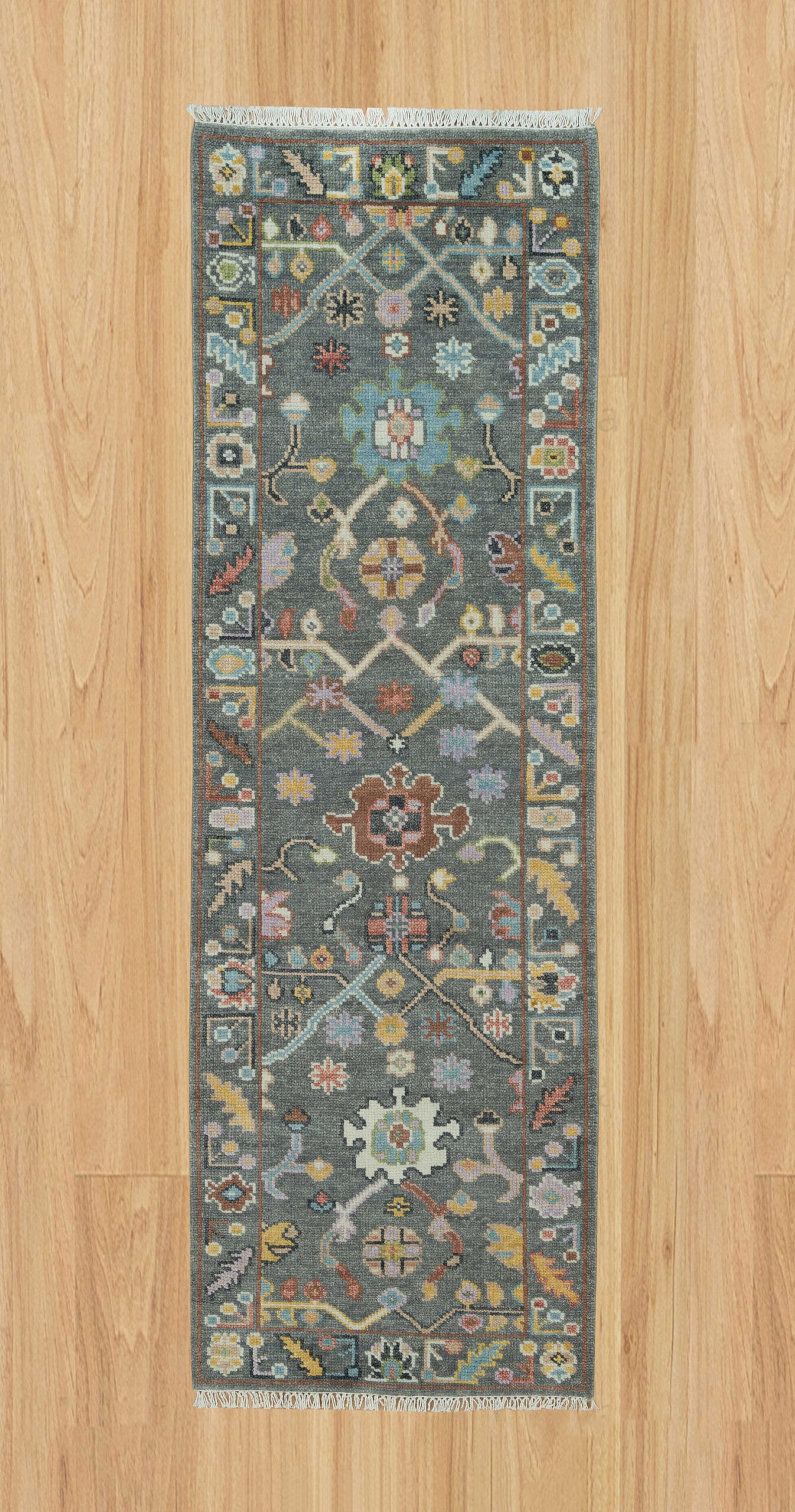 Handmade Contemporary Oushak Runner Rug in Multicolor | Navy Accent Modern Turkish Rug | Living Room rug with Floral Design, Colorful Turkish Oushak hand knotted wool Transitional Design, handmade rug, area rug, vintage wool rug, Oushak rug. Hand Knotted, Vintage 2.6×8, 2.6×10, 2.6×12, 2.6×14, 2.6×15, 2.6×16, 2.6×18, 3×10, 3×12, 3×14, 3×15, 3×20, 4×10, 4×12, 4×15, 4×16 Wool Runner Area Rug |